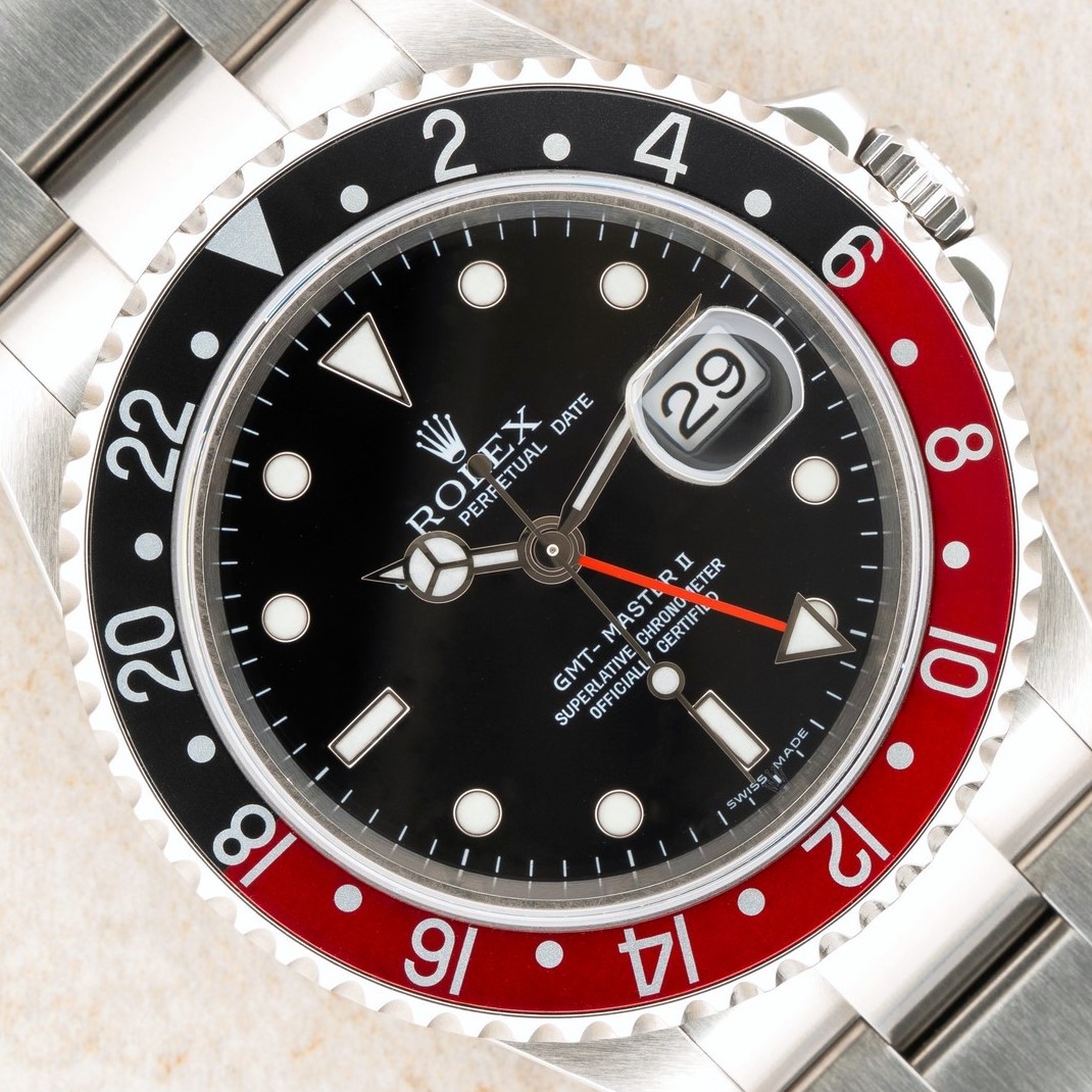 The hands, crystal, as wel as the bezel are perfect and the Coke inlay shows only the lightest signs of wear.