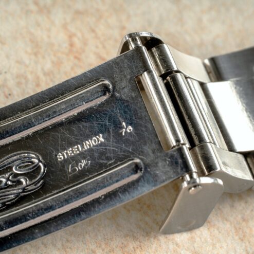 The 93150 Oyster bracelet is also in fine vintage condition. It shows slight stretch and identical signs of wear to the case. The clasp code is 1/76, and it’s either a slightly newer bracelet or the watch has been delivered late and this is the original bracelet. I’m betting on the original.
