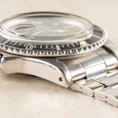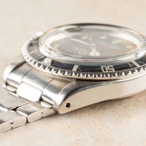 The highlight is undoubtedly the wonderful MKIV Red Submariner dial. As the pictures perfectly show, the printing is wonderfully clear, the red lettering is vibrant, and the dial shows no flaws whatsoever. Even the minute track, which often shows chips, is flawless here.