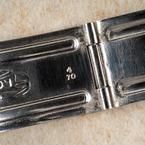 The 9315 folded oyster bracelet is in very good vintage condition. It shows the typical stretch for folding bracelets but is very comfortable to wear and, with all links included, is perfectly suited even for larger wrists. The clasp code is 4/70, confirming that it is the original bracelet for the watch.
