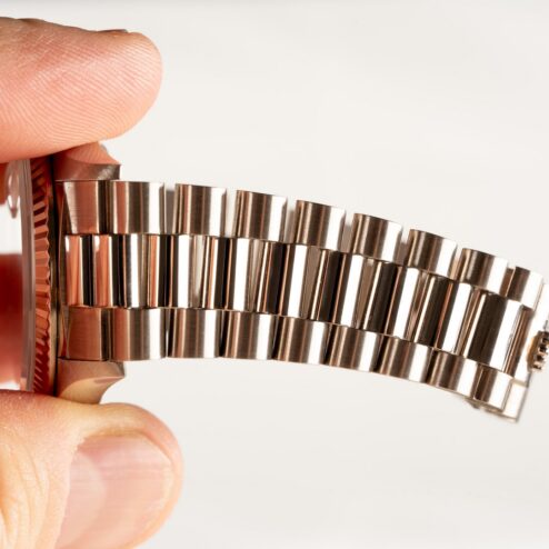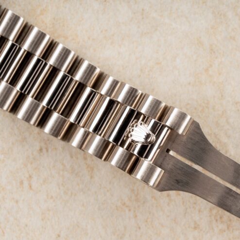 The 8385 President bracelet is very delicate, with minimal stretch and a fully intact crown on the clasp. The bracelet comes with 22 links and, with clasp code T11 for November 1995, is the original bracelet for the watch.