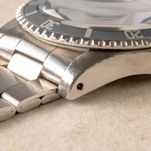 The case is as it should be for a Comex. Worn and used. The watch has been polished maybe once. Why am I writing “maybe”? Because I can’t say whether it’s unpolished or not. If I had to bet my money I would bet on unpolished. It’s super fat, has the correct chamfers and I don’t see any of the typical polish marks.