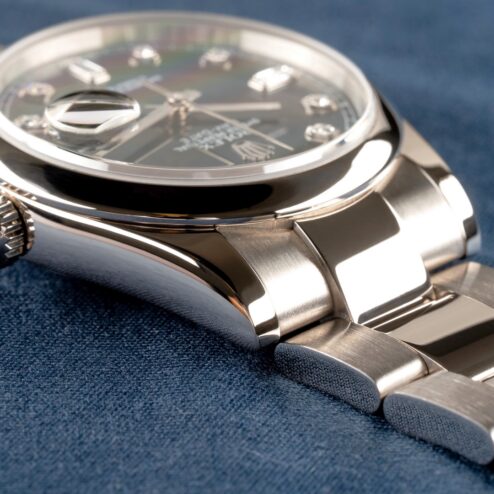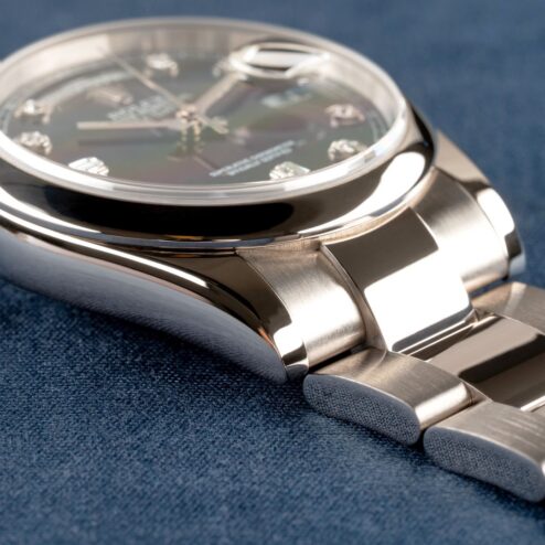 Das schwarze Zifferblatt mit Diamantindexen ist im perfekten Zustand. Ich finde den Kontrast des schwarzen Diamantblattes zur glatten Lünette der Uhr wirklich top. Perfekte Mischung aus klassisch und sportlich.