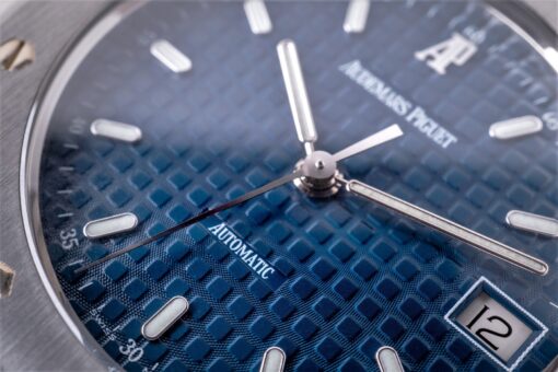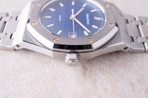 Beschreibung: Unpolierte blaue Royal Oak im Komplettpaket.