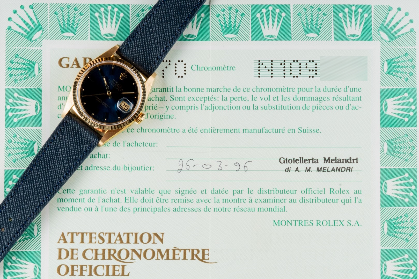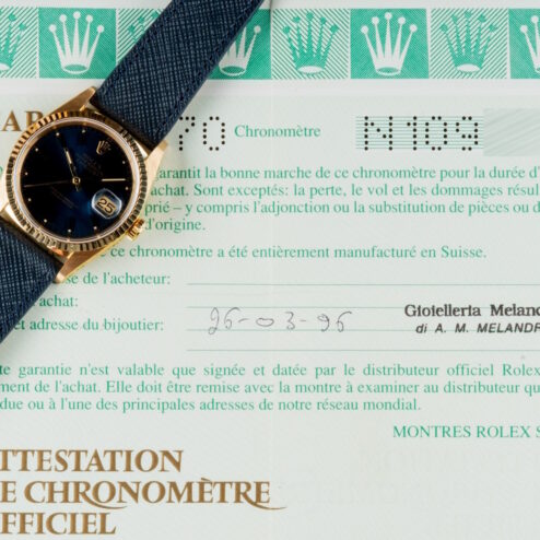Klar. Super super full set. Verkauft am 26.03.1996 von Gioielleria Melandri in Italien. Der Lieferumfang umfasst echt alles. Oyster Booklet, Datejust Booklet, Kalender, ja sogar das originale Notizheft im schönen Ledereinband ist Teil des Lieferumfanges. Selten so ein schönes Set gesehen.