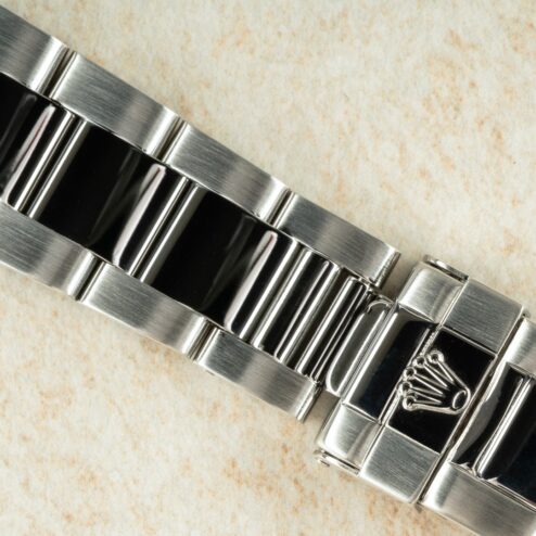 Das 78390A Oysterband ist wie die Uhr top, mit minimalsten Tragespuren und nahezu keinem Stretch. Die Krone auf der Schließe ist top und vollständig intakt. Der Schließencode lautet AB4 für April 2000 und somit handelt es sich natürlich um das Originalband zur Uhr.