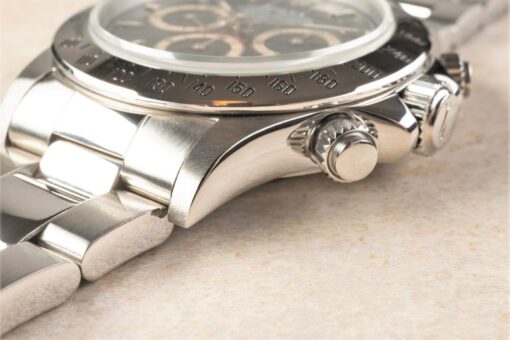 Das schwarze Tritium Daytona Blatt ist im perfekten Zustand ohne Schwächen. Die Totalisatoren haben eine leicht cremige Patina angenommen.