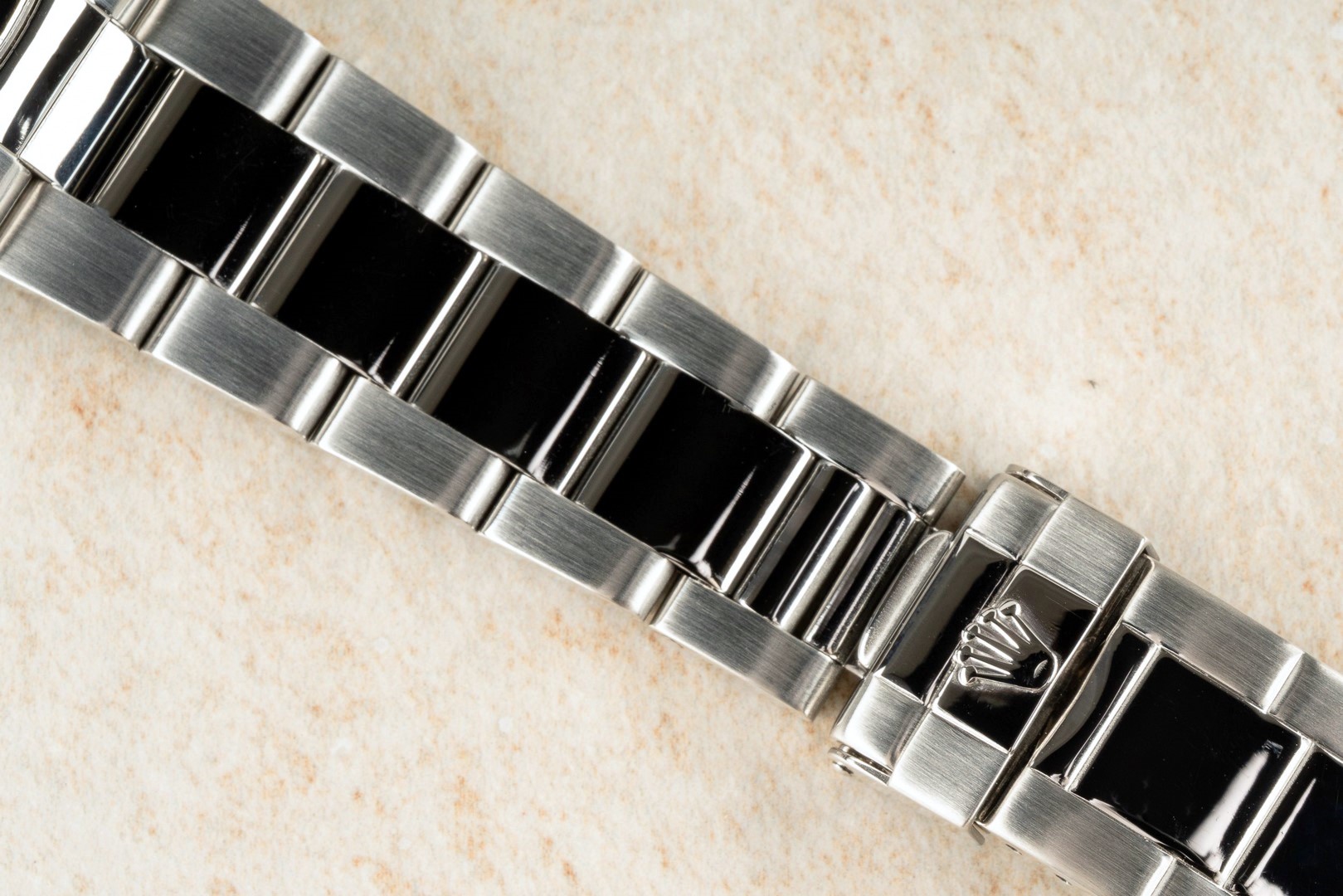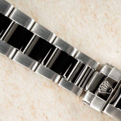 Das 78390 Oysterband mit 503B Anstössen ist wie die Uhr im sehr guten Zustand. Auch das Band wurde professionell aufgearbeitet, sodass es nur geringe Tragespuren zeigt. Es hat leichten Stretch und mit Schließencode X1 für Januar 1999 handelt es sich um das Originalband zur Uhr.