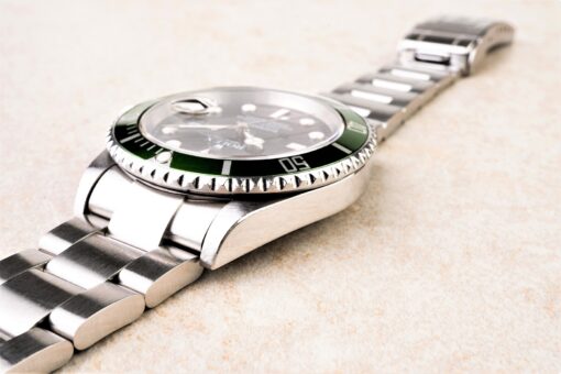 Das 93250 Oysterband ist im guten Zustand mit 11 Gliedern. Der Schließencode lautet OP8 für August 2006 und somit handelt es sich um das Originalband zur Uhr.