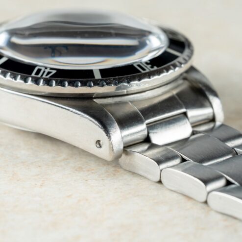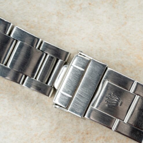 Das 93150 Oysterband wurde im Zuge des bereits erwähnten Services in 1980 getauscht. Es kommt mit leichtem Stretch, stimmigen Tragespuren zum Gehäuse und mit Schließencode F für 1981 stammt es aus dem Jahr des Services von Rolex.