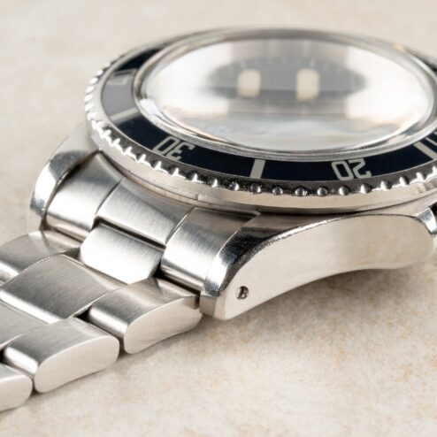 Das Gehäuse ist wunderbar und mit dem dem nötigen Vintage Charme ausgestattet. Es wurde einmalig poliert, ist super fett, mit den typischen Tragespuren die ein Taucherleben mit sich bringt. Etwas Hemdpolitur ist auch vorhanden, aber am Arm hat es einen Charme, „Mon dieu“ wie der Franzose sagen würde.