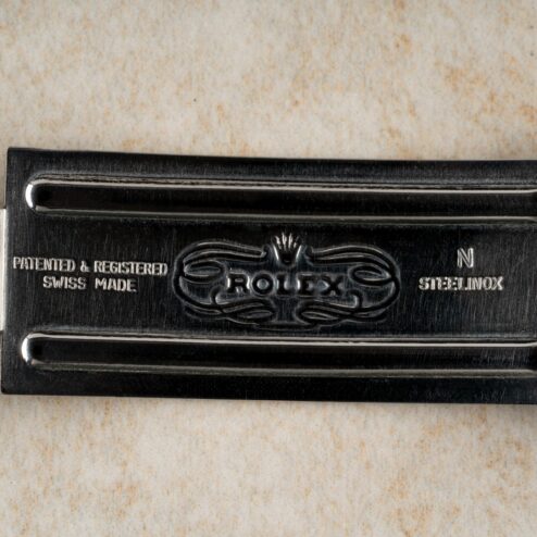 Das 93150 Oysterband ist wie die Uhr im feinen Vintage Zustand. Das Band zeigt geringen Stretch, geringe Tragespuren und trägt sich perfekt. Schließencode ist N für 1990. Das Band wurde im Zuge des erwähnten Services getauscht.
