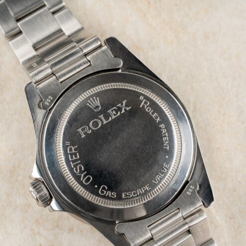 Natürlich hat die Uhr, wie es für eine Double Red aus diesem Seriennummernbereich sein muss, einen geraden Rolex Schriftzug auf dem Deckel und die volle Seriennummer innen im Deckel graviert.