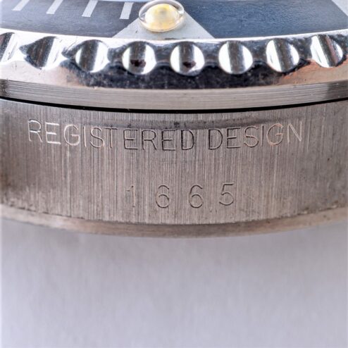 Die Lünetteneinlage ist ein wunderbar ins graue gealterte MK3 Lünetteinlage mit dickem Druck. Sie hat eine leichte Beschädigung bei 12, welche kaum sichtbar ist und kommt natürlich mit einer farblich sehr gut passenden Tritiumperle.