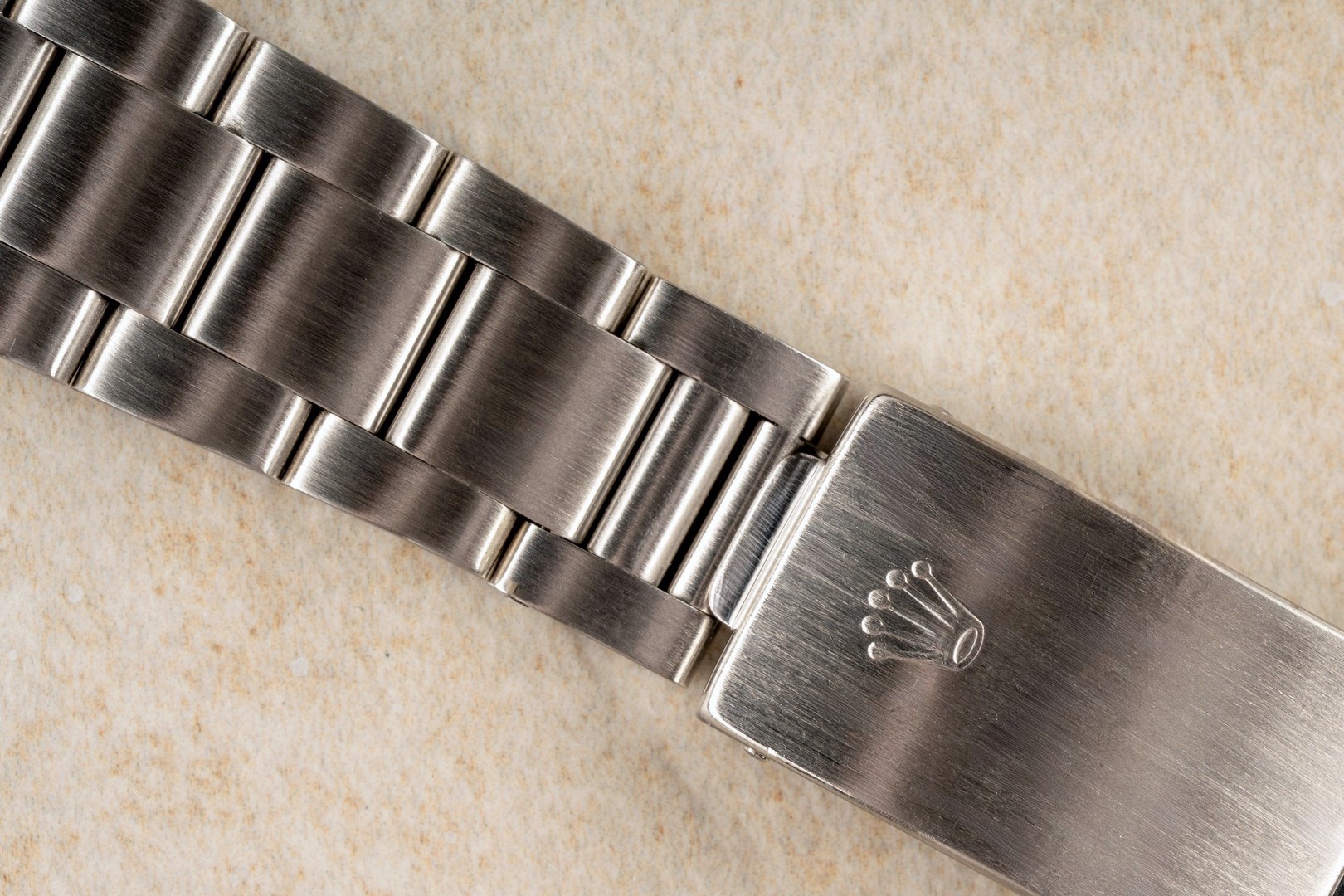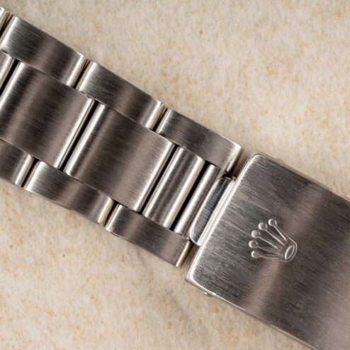 Das 78360 Oysterband ist wie die Uhr im feinen Vintage Zustand. Das Band zeigt keinen Stretch, leichte Tragespuren, trägt sich perfekt und mit Schließencode PJ6 für Juni 2008 ist es jünger als die Uhr