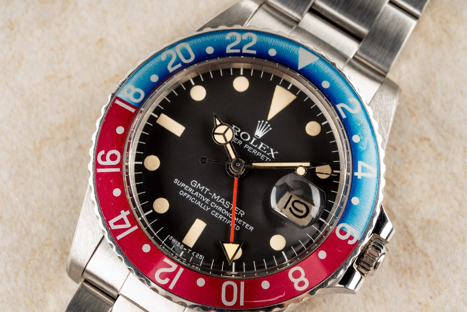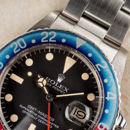 Beschreibung: Tolle 1675 GMT-Master Maxi MKV mit perfekter Vintage Optik