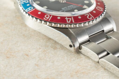 Das wunderbare GMT-Master Blatt ist im herrlichen Zustand. Kräftig schwarz, mit klarem Druck bietet es die ideale Basis für die tolle Leuchtmasse. Diese ist nur gering gealtert und präsentiert sich in kräftigem cremeweiß.