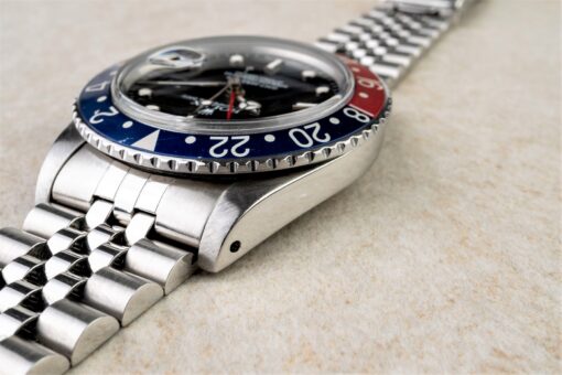 Das Inlay ist ein schön gefadetes Pepsi Inlay mit leichten Tragespuren und verleiht somit der Uhr einen sauberen Vintage Charme.