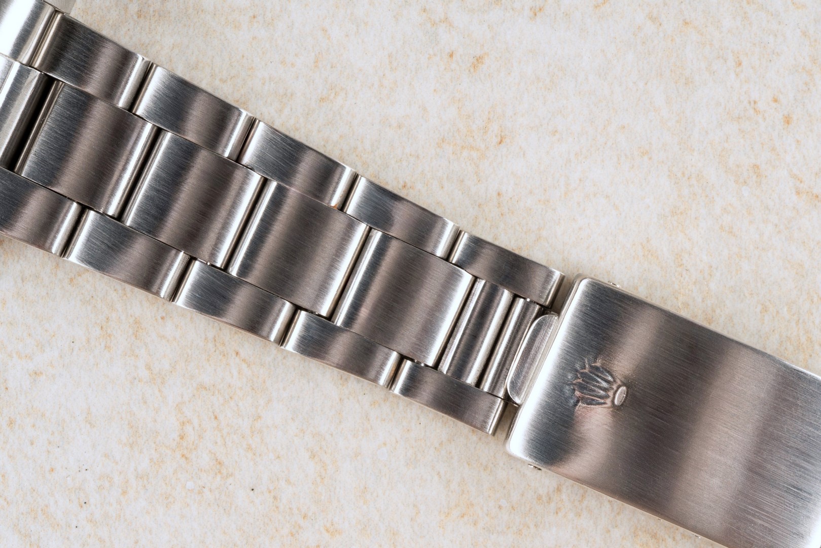 Das 78360 Oysterband ist auch fein. Es zeigt leichten Stretch und geringe Tragespuren. Es trägt sich wunderbar und mit Schließencode F für 1981 ist es etwas älter als die Uhr.