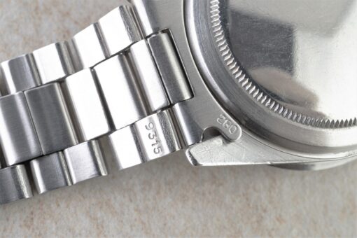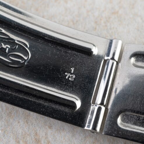 Zuletzt wie immer gerne der Hinweis zum Band. Die Uhr kommt mit originalem und sehr gut erhaltenen 9315er Faltband mit korrekten 280er Anstössen. Schließencode ist 1/72 und somit perfekt passend. Die Uhr wurde Ende 71, Anfang 72 hergestellt.