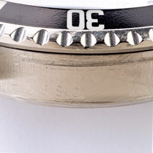Die Lünetteneinlage ist eine wunderbare und fett gedruckte MK3 Einlage. Der Zustand ist ebensfalls sehr gut mit nur geringen Tragespuren und kräftiger schwarzer Farbe. Natürlich ist der Leuchtpunkt auf der 12 Uhr Position auch Tritium und so wie die gesamte Uhr 100% original.