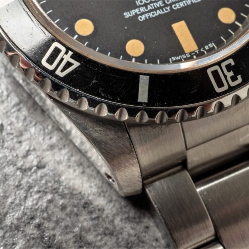 Das Gehäuse wurde in der Vergangenheit einmal poliert, dies aber gekonnt und ohne großen Materialabtrag. Kanten sind top scharf und das finish ausgezeichnet.