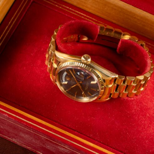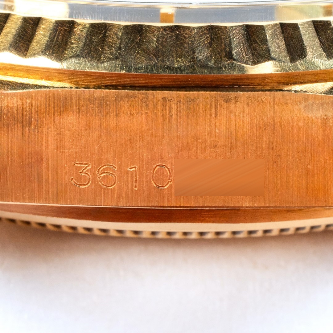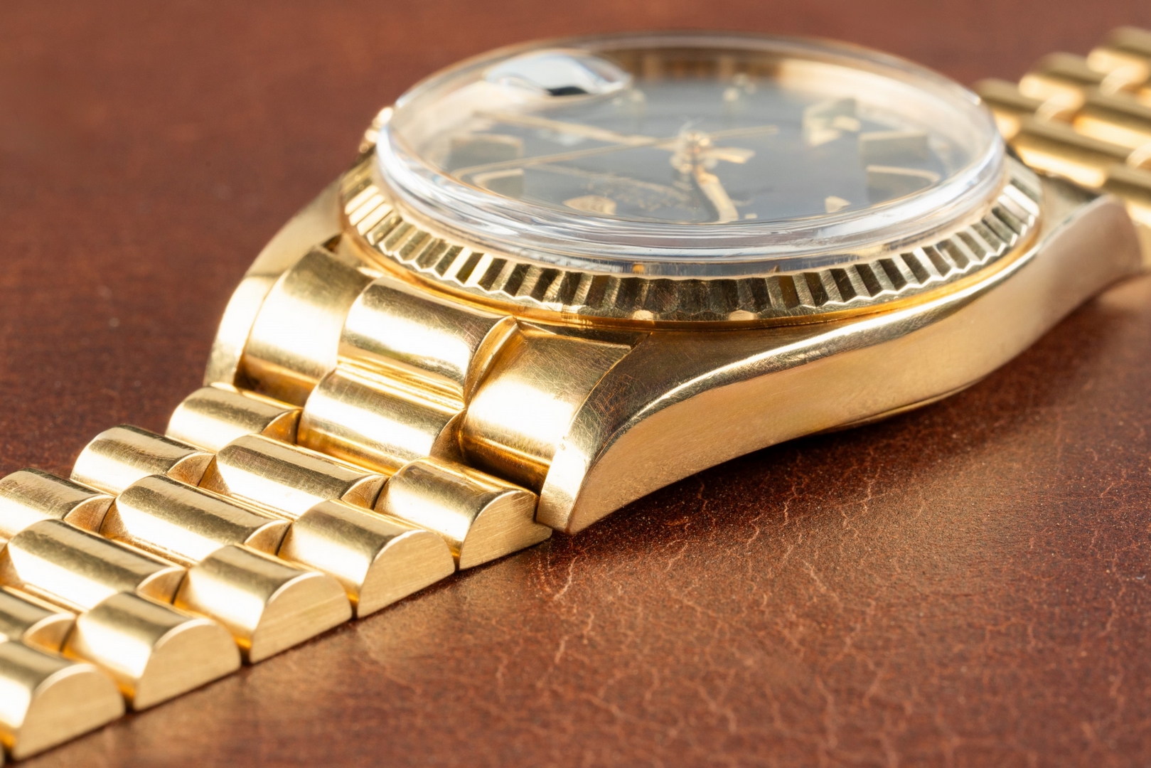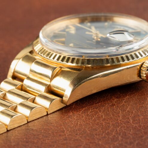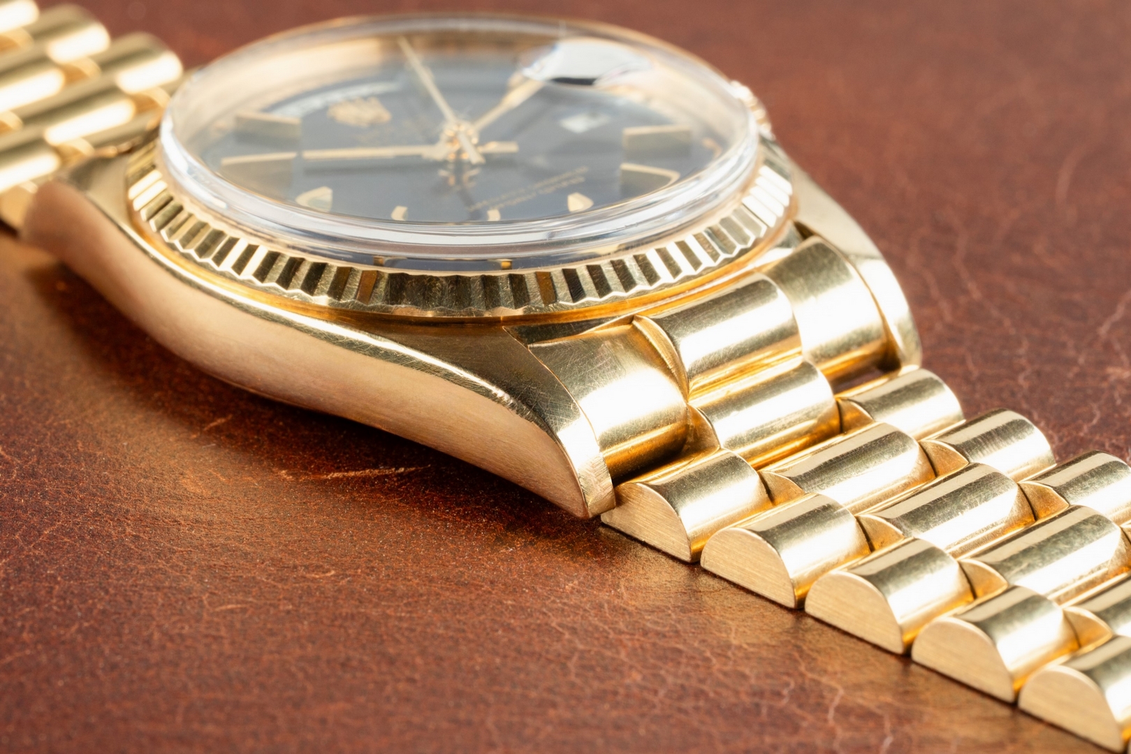 Das 8385 Präsident-Armband ist fein und ebenso besonders. Nicht viele 1803 wurden mit verdeckter Schließe ausgeliefert. Diese hat die verdeckte Schließe. Ferner ist das Band ebenso unpoliert mit perfekt intakter Krone. Leichter Stretch ist vorhanden, aber das Band trägt sich perfekt und kommt mit allen 24 Gliedern.