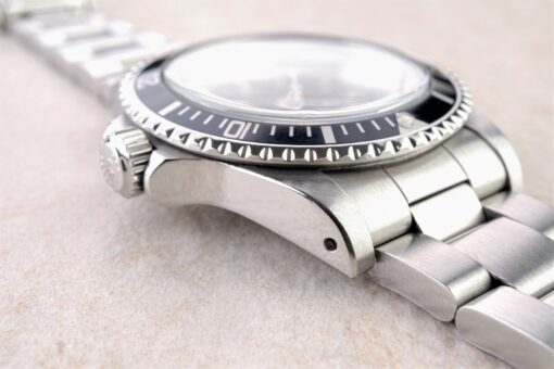 Das Gehäuse ist im top Zustand. Wahrscheinlich einmalig in der Vergangenheit poliert, zeigt es viel Material, tolle Hörnern, einen schönen scharfen Kantenschliff und ein sehr gutes mattes Finish auf den Hörnern. Tragespuren sind im geringen Umfang vorhanden, jedoch keine tiefen Kratzer, Dellen, oder dergleichen.