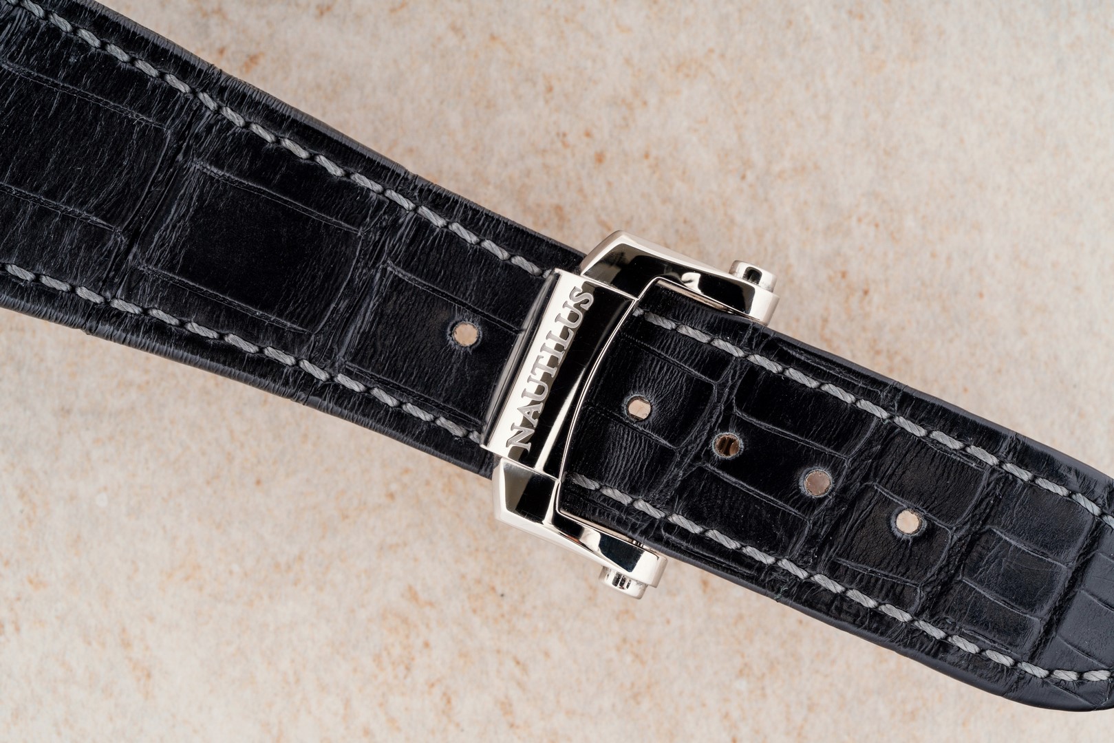 Das Lederband inklusive Patek Philippe Faltschließe ist ebenfalls sehr fein. Leichte Tragespuren auf der Schließe und das Lederband ist beidseitig noch wunderbar erhalten.