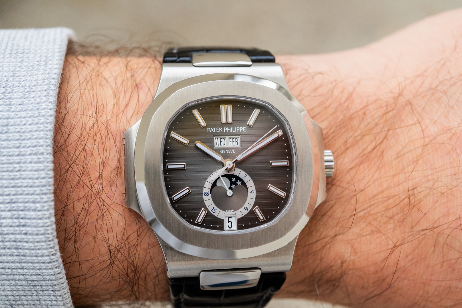 Das graue Nautilus Zifferblatt ist im perfekten Zustand.