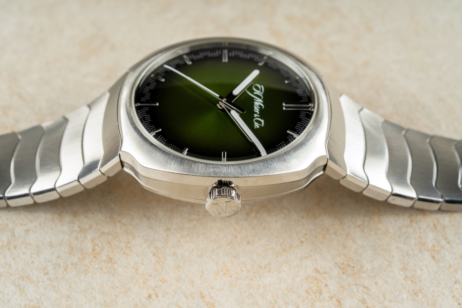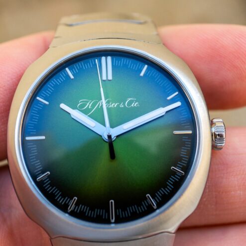 Leute die Jungs von Moser machen Zifferblätter von einem anderen Stern. Dieses tiefe Grün, die unterschiedlichen Farbschattierungen je nach Licht und Blickwinkel, ehrlich einfach grandios. Übrigens nennt Moser dieses Blatt Matrix Green Fumé und das ist wohl die beste Bezeichnung die man diesem Blatt geben kann.