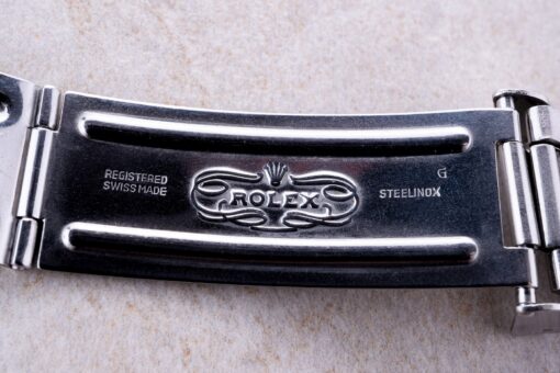Das 9315 Falt-Oysterband ist im altersbedingt wunderbaren Zustand. Es zeigt nur minimalsten Stretch, ist auch für große Handgelenke passend und mit Schließencode G für 1982 handelt es sich um das Originalband zur Uhr.